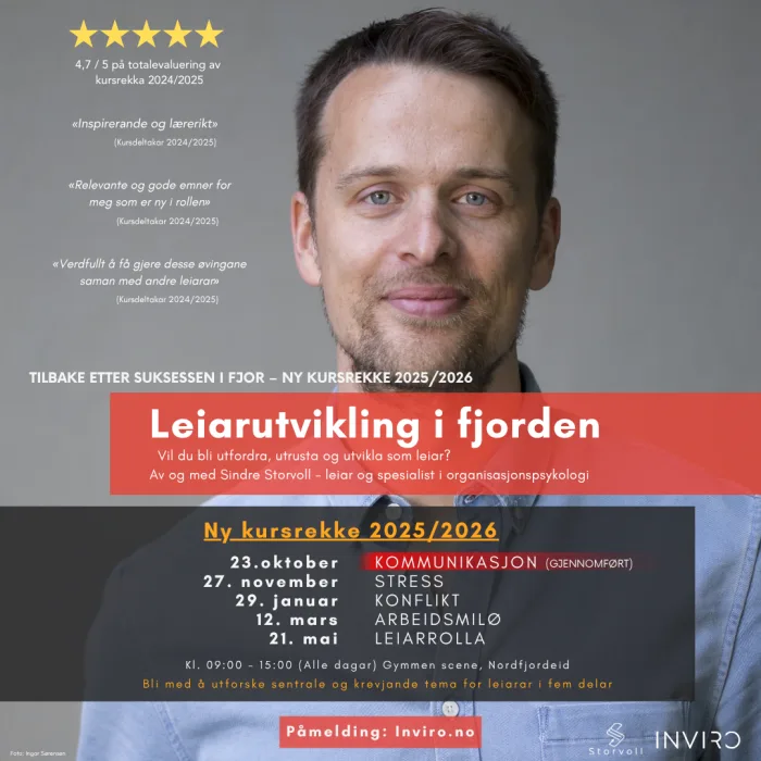 12.03.26: Leiarutvikling i fjorden - kursdel 4/5: Arbeidsmiljø