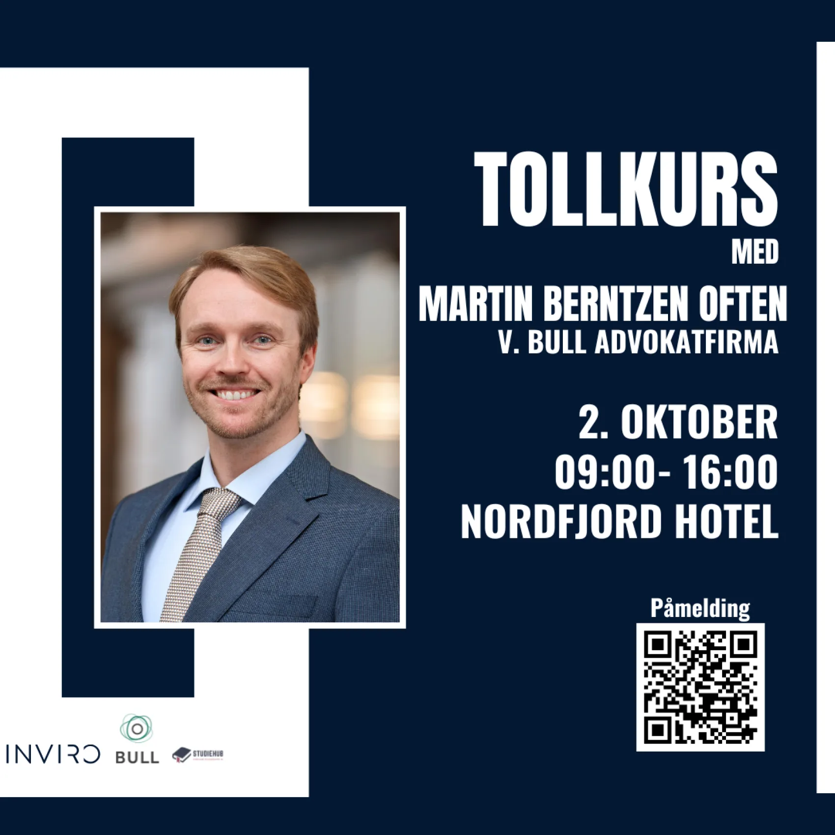 Inviro inviterer, i samarbeid med advokat Martin Berntzen Often fra BULL Advokatfirma, til et lærerikt og praktisk rettet tollkurs på Nordfjord hotel
